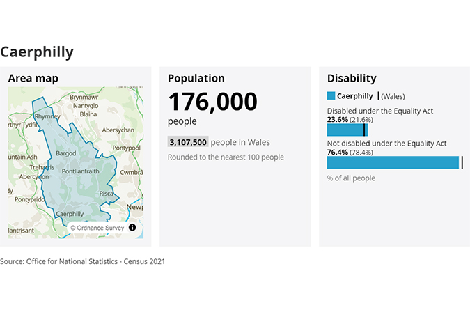 In Caerphilly County Borough alone, 23.6% of the 176,000 population is classed as disabled according to statistics from the 2021 Census administered by the Office for National Statistics.