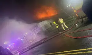 Fire crews tackle huge blaze at Pontllanfraith industrial estate