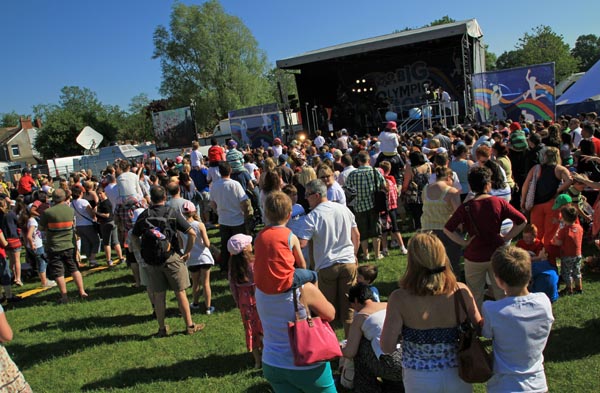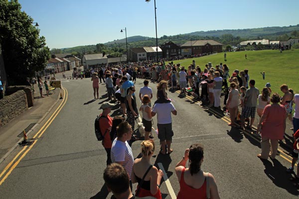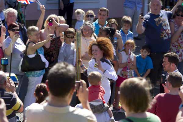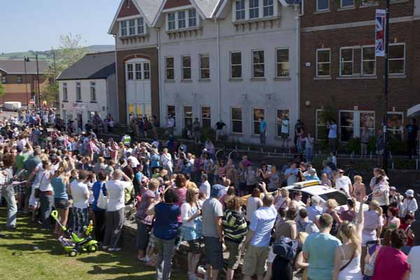 Thousands of people lined the streets of Caerphilly town on Saturday to welcome the Olympic Torch relay.