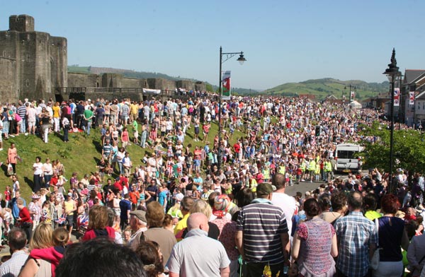 The crowds were out in force in front of Caerphilly Castle to welcome the Olympic flame – Picture by Ian Lovell