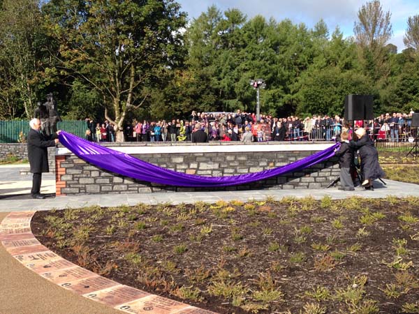 The memorial garden, designed by landscape gardener Stephanie Wilkins, was built by volunteers from the Aber Valley Heritage Group and includes a bronze statue, a wall of remembrance and a path of memory.