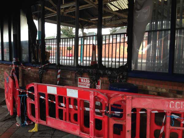 South Wales Fire and Rescue Service said four ornamental trees were set alight on a platform at Caerphilly railway station, which then spread to the bus station shelter.