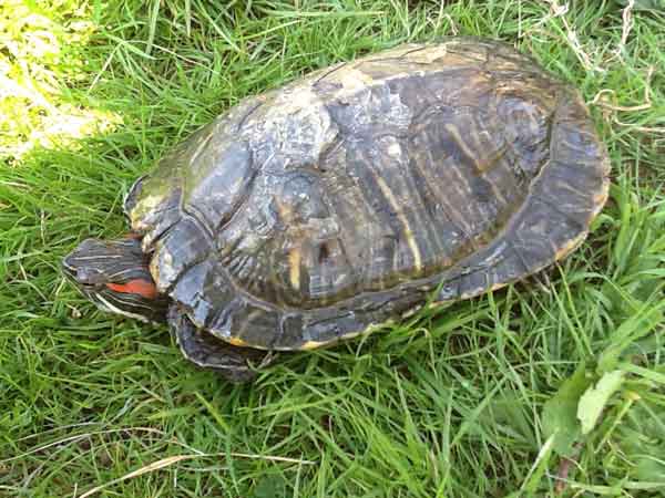 The football-sized reptile was later identified as an African sideneck turtle and was distinctive as its back webbed feet were missing on both sides. Despite this the turtle had no sign of wounds or scars so it is believed the missing limbs were caused by a deformity.