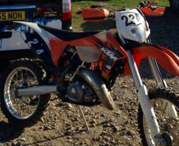 - A KTM EXC 250 off road motorbike – black and orange in colour