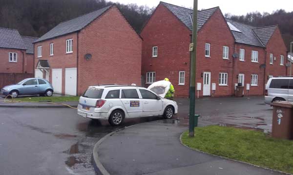 At around 3.03pm on Thursday January 12, a crew from Caerphilly attended the fire at Bluebell View Estate, Llanbradach, where a white taxi was on fire.