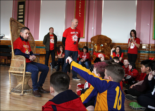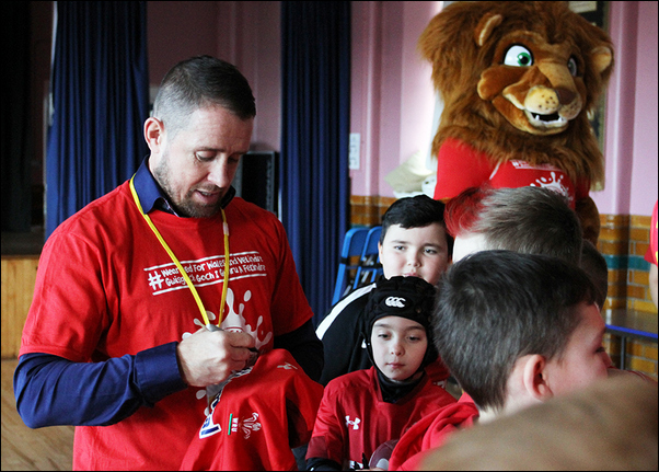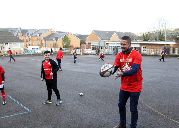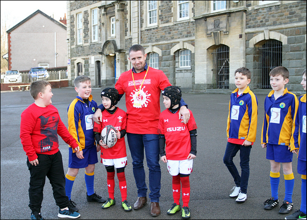 Rugby legend Shane Williams dropped into Twyn Primary School in Caerphilly town on Friday, February 2, to show his support for the ‘Wear Red for Wales and Velindre’ campaign.