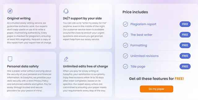 EssayPro offers quality, flexibility, and tools that make your life easier. From skilled writers to useful features, the service is made for students.