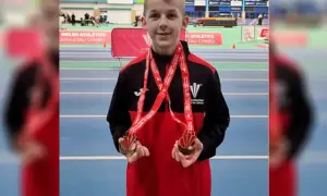 Jayden Jones, a pupil at Libanus Primary and member of Rhymney Valley Athletics Club, won in the 200m, long jump, and 60m sprint hurdles on February 1 and 2.