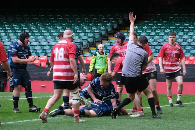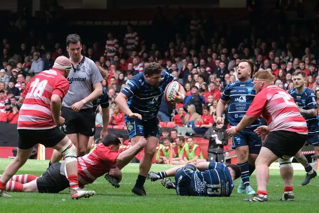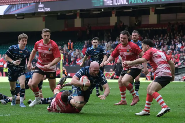 Full-back Crockett added a fifth try after Brecon halfbacks Hugh Prothero and Gareth Price used the short side from the scrum to overload the defence in the 66th minute. Scrum-half Protheroe scored a sixth try when he broke through from inside the 22, with replacement Iestyn Phillips also scoring a try in the final ten minutes.
